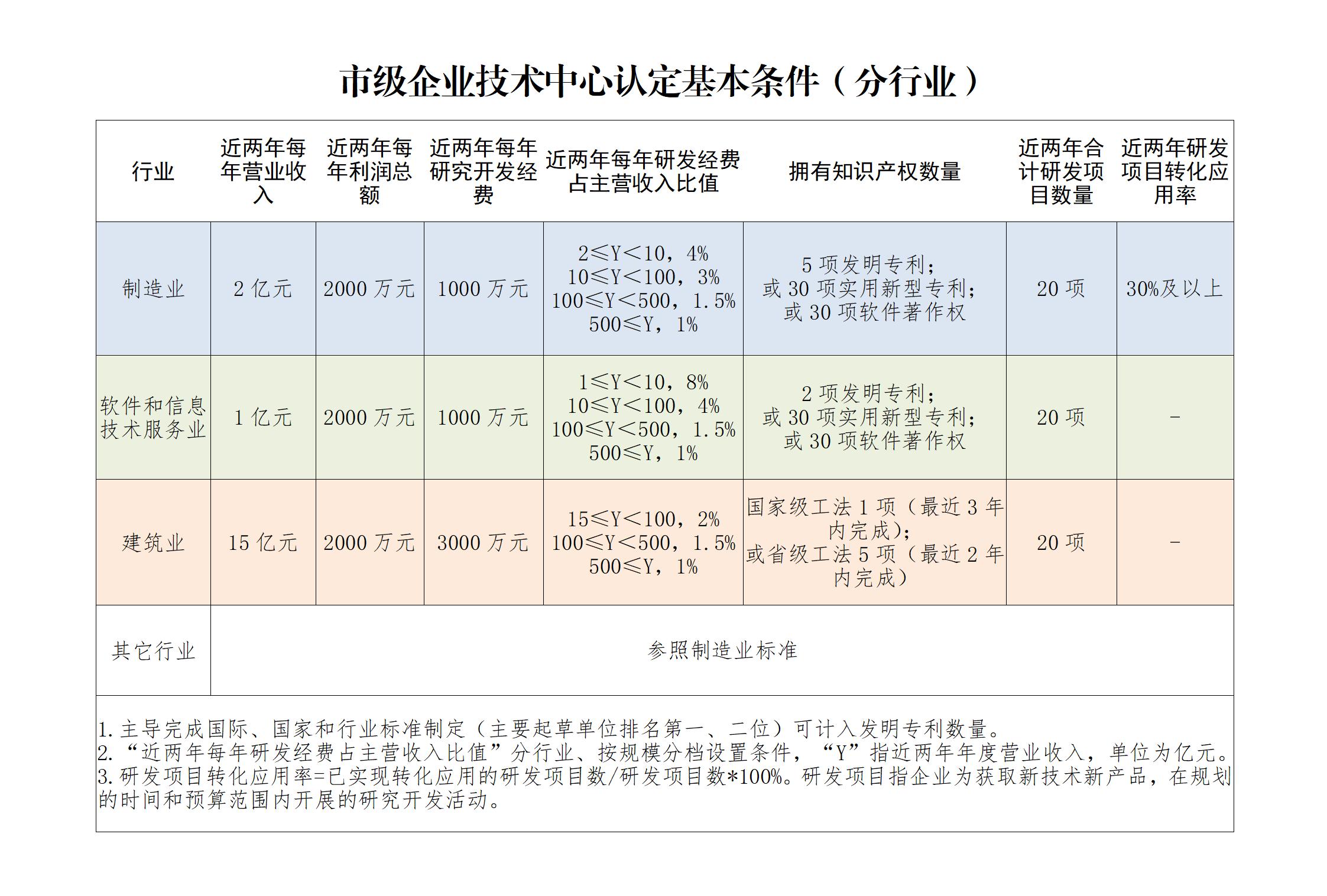 附件:市級企業(yè)技術中心認定基本條件(分行業(yè))